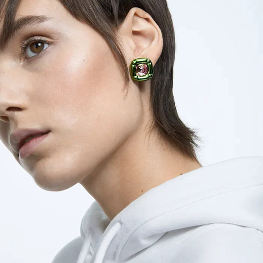 Chroma stud earrings, Octagon cut, Pink, Rhodium plated