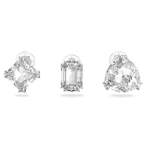 Millenia clip earring, Set (3), Asymmetrical, White, Rhodium plated