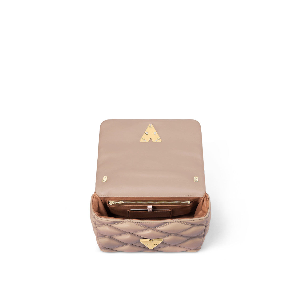 Nicolas Ghesquière continúa reinterpretando el acolchado de maletaje que se encuentra originalmente dentro de los baúles de la Casa, embelleciendo la piel de cordero de este bolso GO-14 MM con el icónico patrón entrecruzado. Un efecto rociado le da un encanto futurista a la bolsa, haciendo hincapié en la mentalidad vanguardista que informa el diseño de Louis Vuitton temporada tras temporada.
