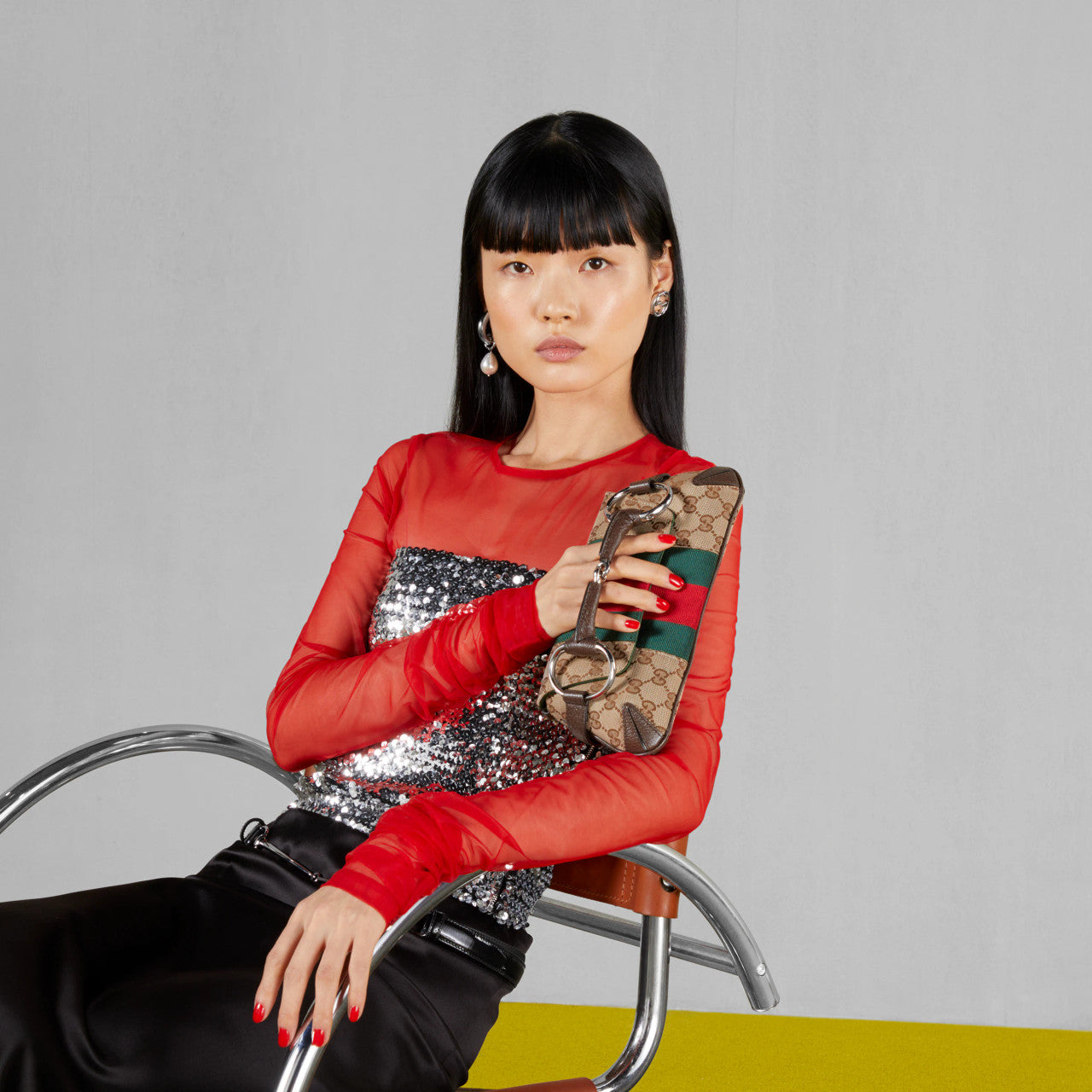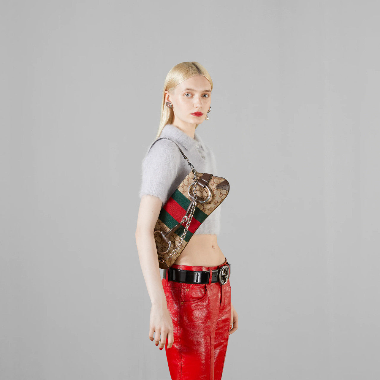 Gucci recupera su pasado y conecta sus modelos clásicos con el presente. Este modelo, que sigue siendo uno de los bolsos más característicos de la Firma, se realza con un motivo Horsebit maxi que se popularizó a principios de los 2000. En la colección Otoño Invierno 2023, se actualiza en clave contemporánea con distintos colores y texturas.